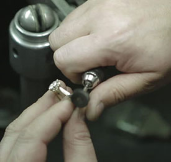We use several different grades of buffers and polishing brushes to be able to access every part and surface of the ring.