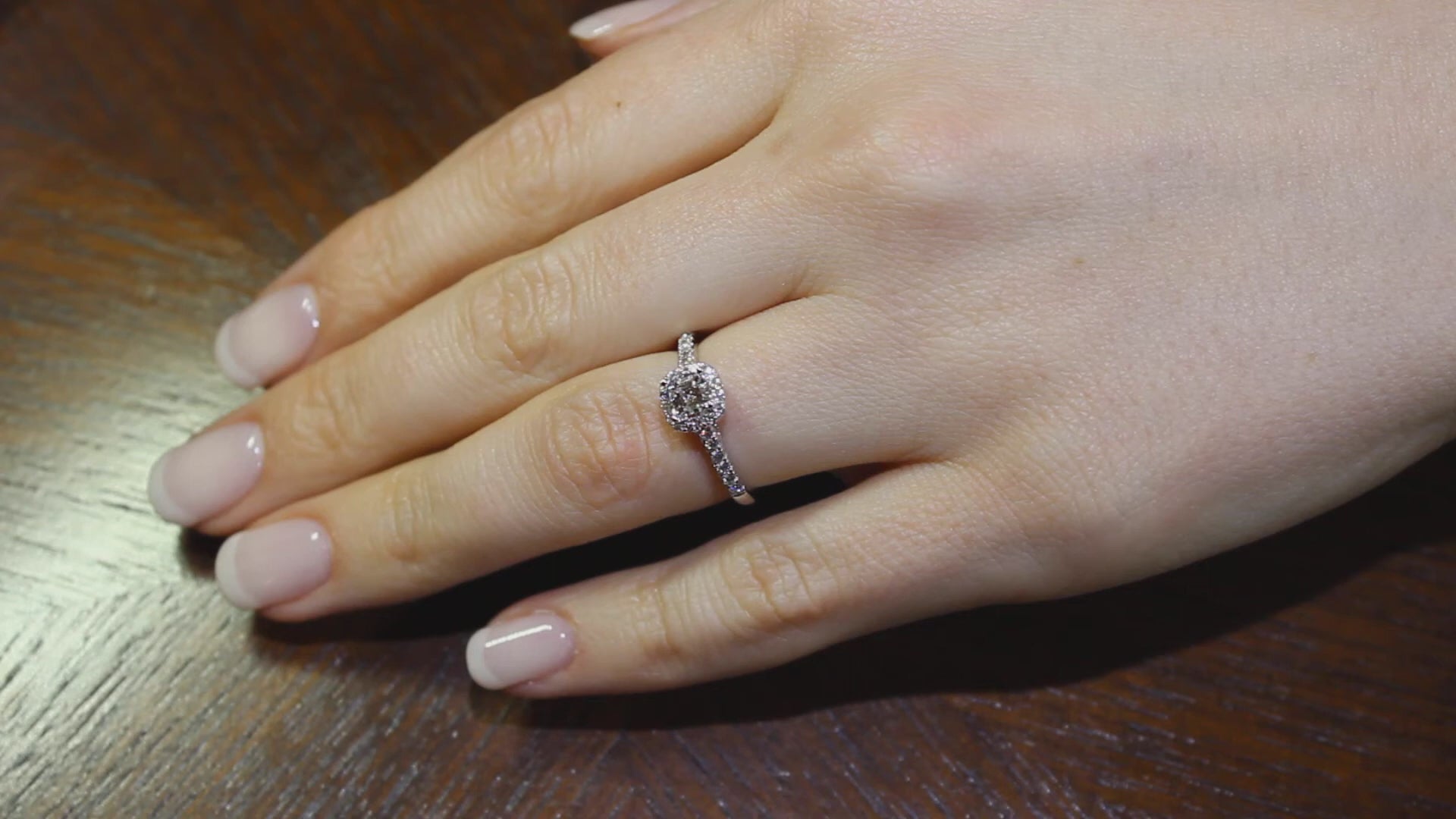The engagement ring pictured has a .61ct D COLOUR, VS1 CLARITY, ASSCHER CUT DIAMOND CERTIFIED BY THE GIA. The halo and the shank have .30ct of diamonds. The TOTAL CARAT WEIGHT IS .91 carats.