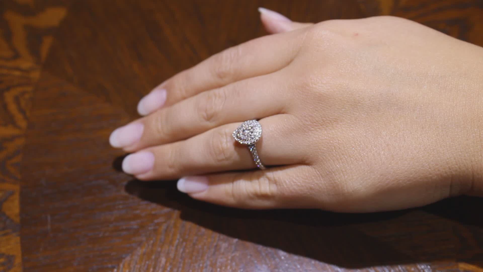 Double Halo Pear Cut Diamond Engagement Ring with Platinum Set Band - 'Solace Pear'