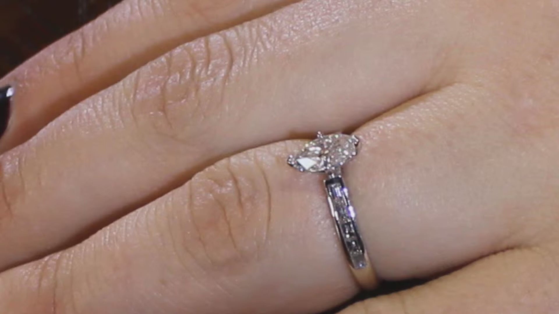 Marquise Cut Diamond Engagement Ring. Discover timeless elegance with our 'Ava DS' marquise diamond engagement ring, meticulously crafted in Dublin, Ireland. This exquisite piece features a GIA CERTIFIED, .70ct D COLOUR, Si1 CLARITY marquise centre stone, perfectly complemented by channel-set baguette diamonds adorning the shank. The elongated marquise shape creates a classic and slender look for the fingers, making it an ideal symbol of enduring love.