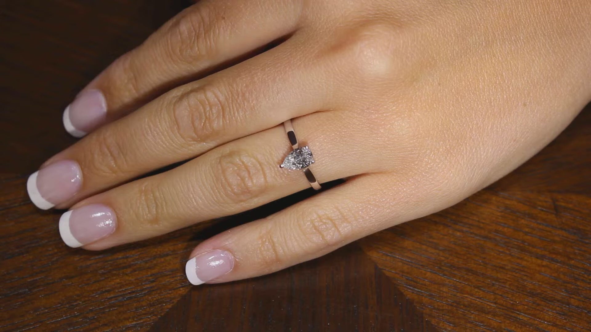 Pear Cut Solitaire engagement ring named ‘Ella’. The Pear Cut Diamond is set in a delicate but strong three-claw setting. This Style of ring is a timeless classic. The Pear shape diamond accentuates the finger making them appear long and slender.