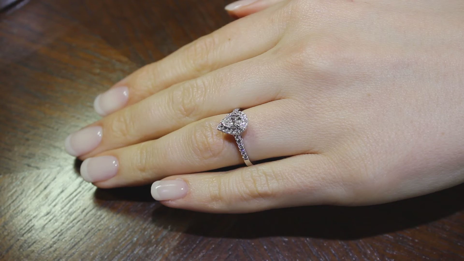 Pear Cut Halo Diamond Engagement Ring with Platinum Set Band - 'Harriot Pear'