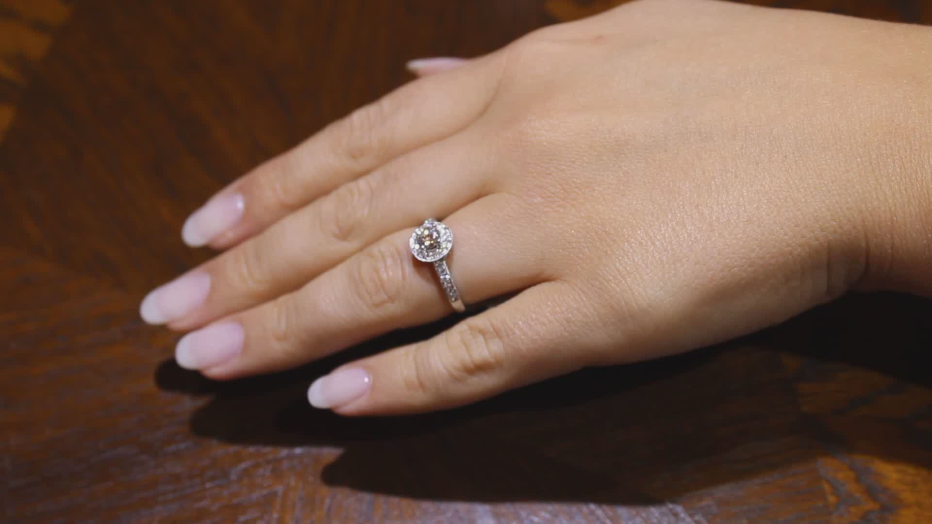 The Antique Engagement Ring pictured has a .40ct G COLOUR, Si1 CLARITY Round Brilliant cut diamond CERTIFIED BY GIA in the centre. The halo and the diamond band are .60ct. THE TOTAL CARAT WEIGHT IS 1ct.