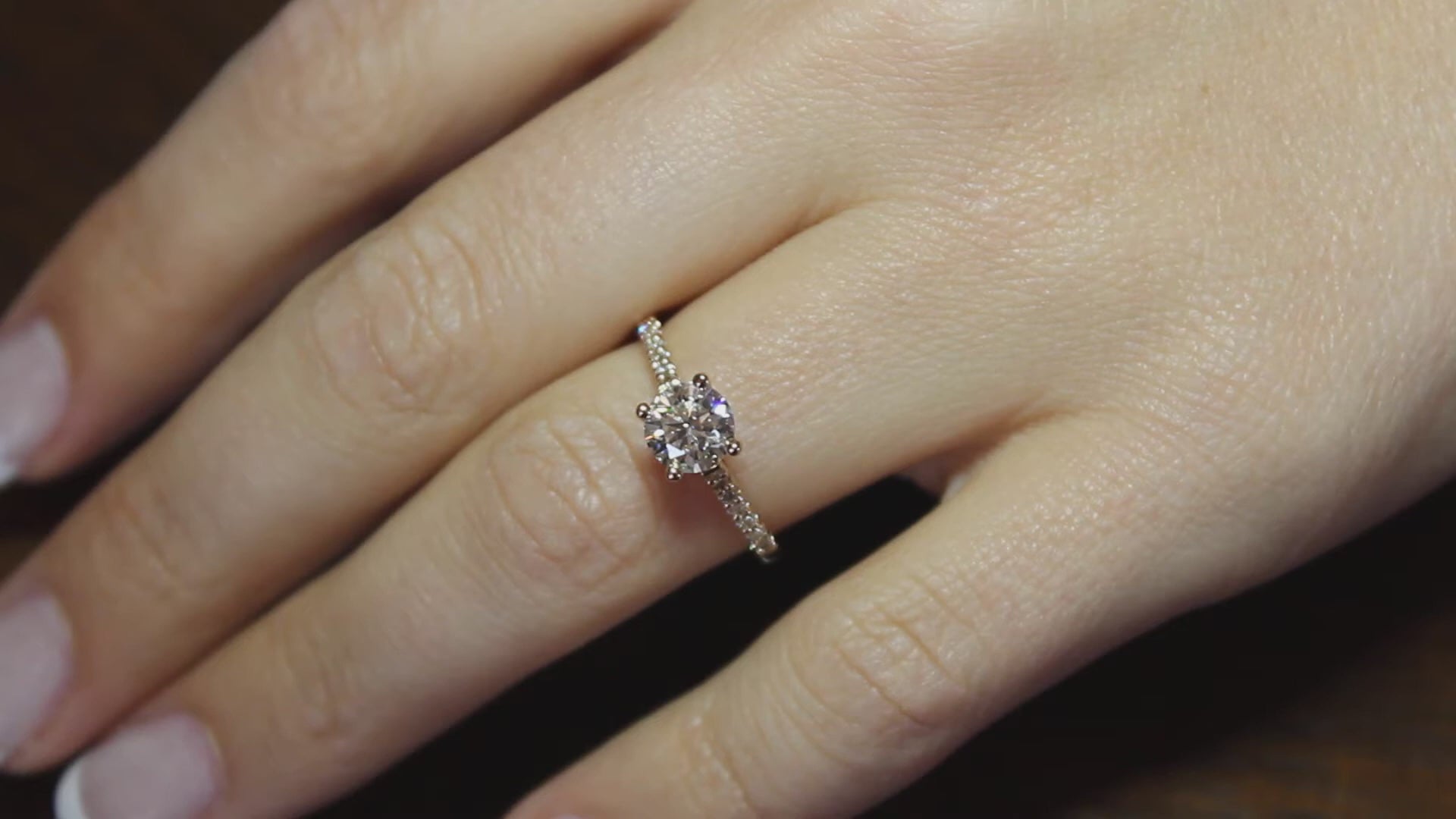 The ring in the images has a GIA-CERTIFIED, .70ct D COLOUR, VS2 CLARITY, EXCELLENT CUT DIAMOND. TOTAL CARAT WEIGHT IS .90CT