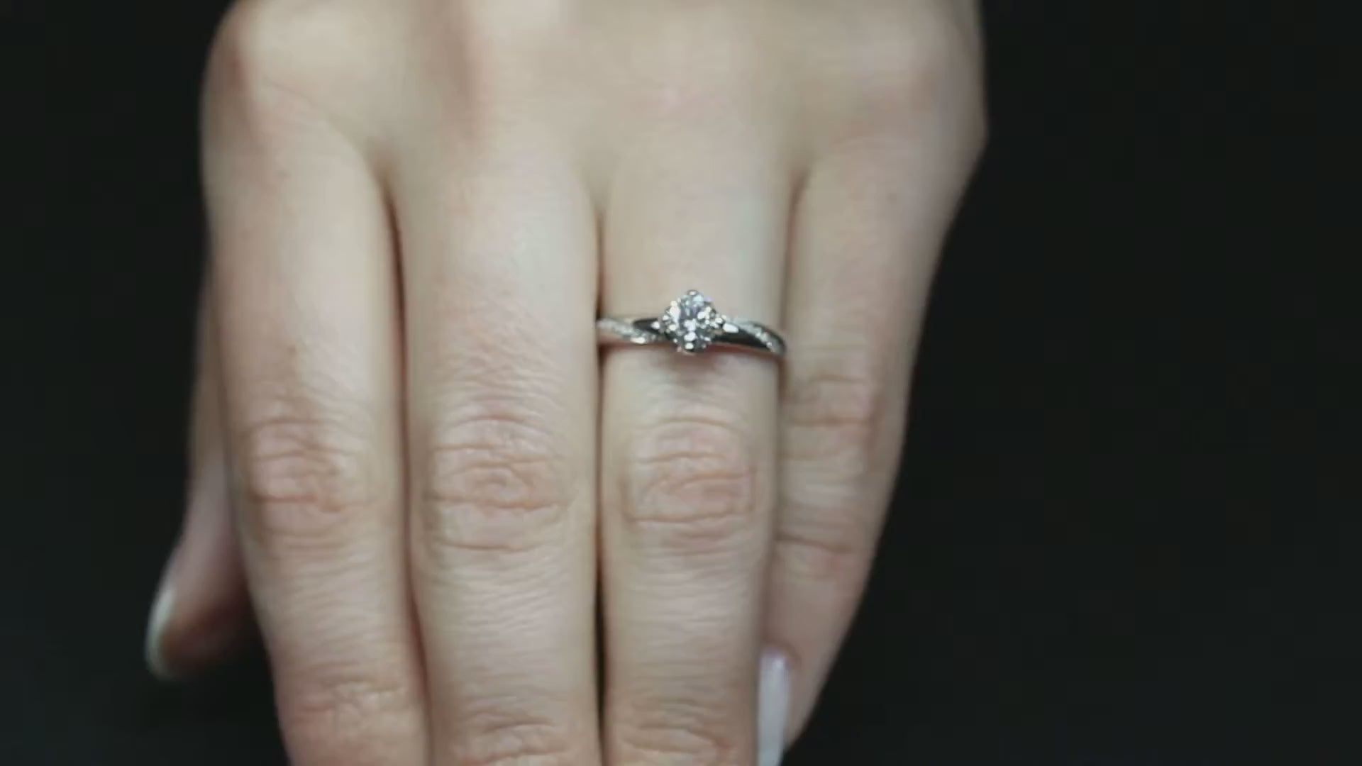 Round Cut Diamond Engagement Ring with Crossover Band named ‘Lara’. With a wonderfully feminine .50ct round brilliant cut diamond centre stone with elegant soft curving pavé set twist band. This beautiful elegant engagement ring is available in white gold, platinum, yellow gold and rose gold and is available with a selection of plain/patterned and matching diamond wedding bands.