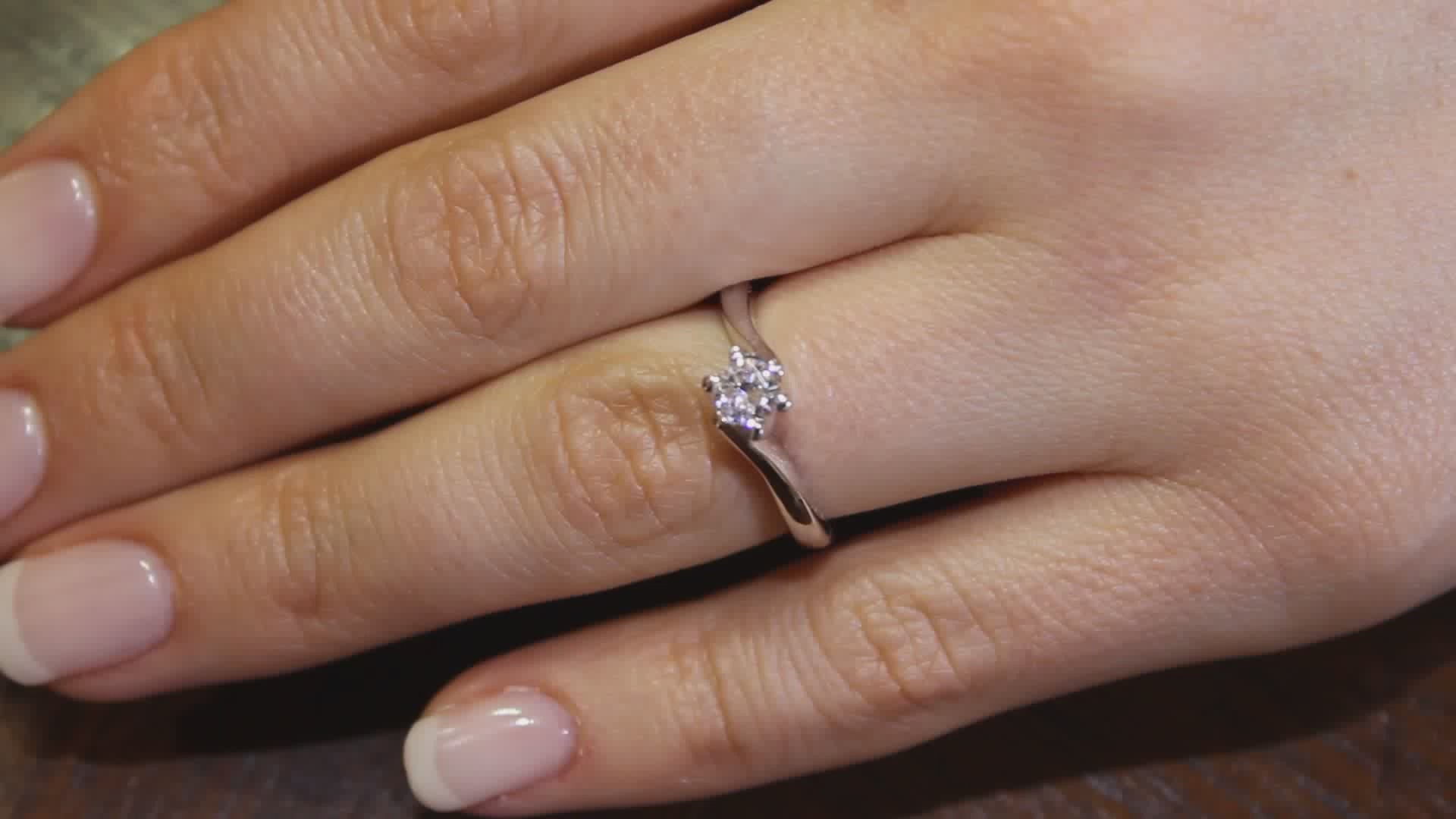 Round Cut Diamond Six Claw Twist Engagement Ring. Introducing the 'Lillian' 6 Claw Twist Engagement Ring from Loyes Diamonds, Dublin, Ireland. This captivating design deviates from the ordinary, showcasing round brilliant-cut diamonds in a fabulous and alluring fashion. The featured ring boasts a stunning Natural/Mined 0.55ct Diamond, E COLOR, Si2 CLARITY, and an Excellent cut.