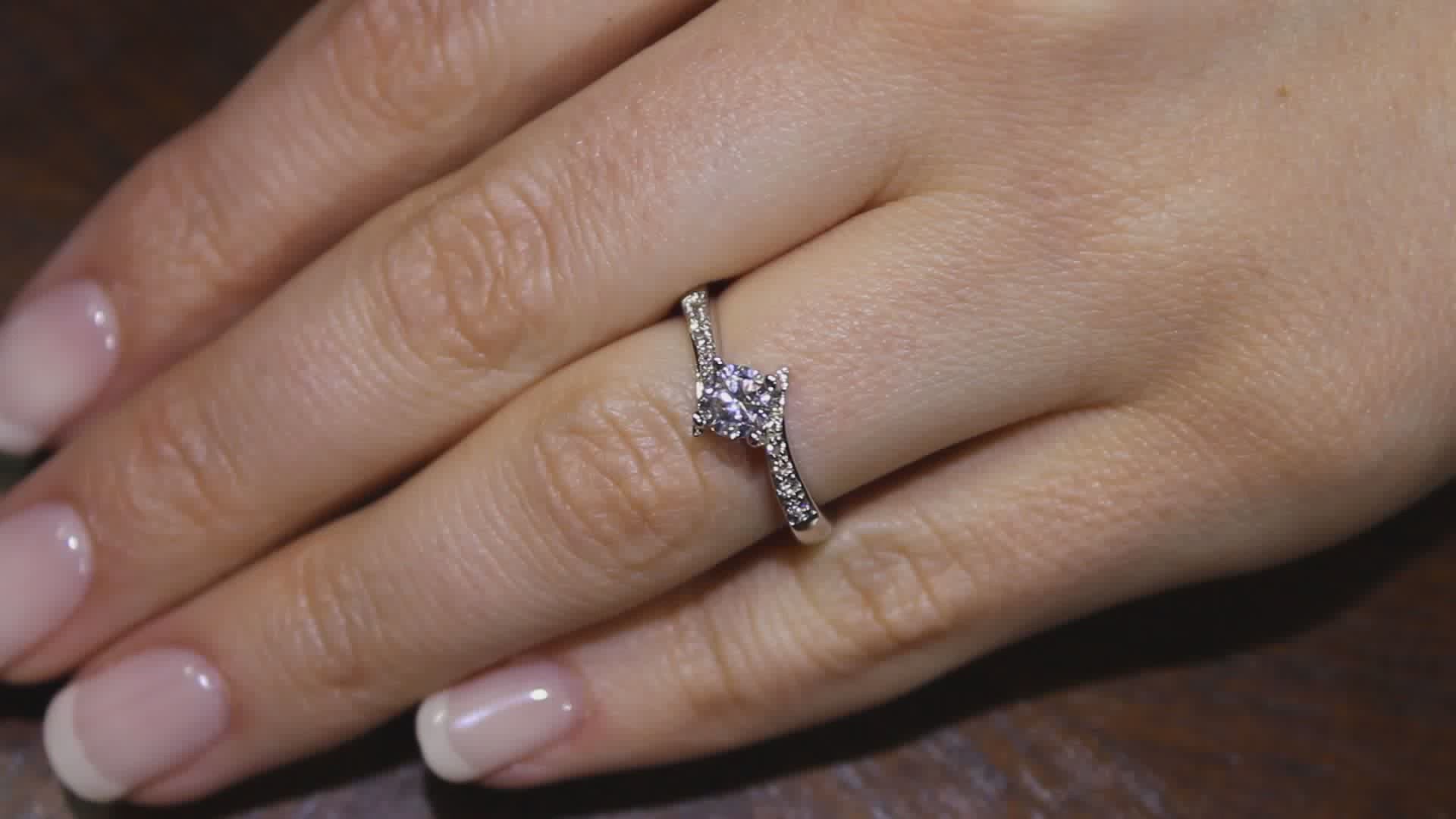 Round Cut Quirky Diamond Engagement Ring. Discover the allure of the "Lorraine" Quirky Diamond Engagement Ring at Loyes Diamonds, your premier destination for Engagement Rings in Dublin, Ireland. This exquisite ring, set in a four-claw design, boasts an offset shank adorned with round brilliant pave set diamonds. Choose from platinum, rose, or yellow gold, with a matching wedding ring for a seamless union.