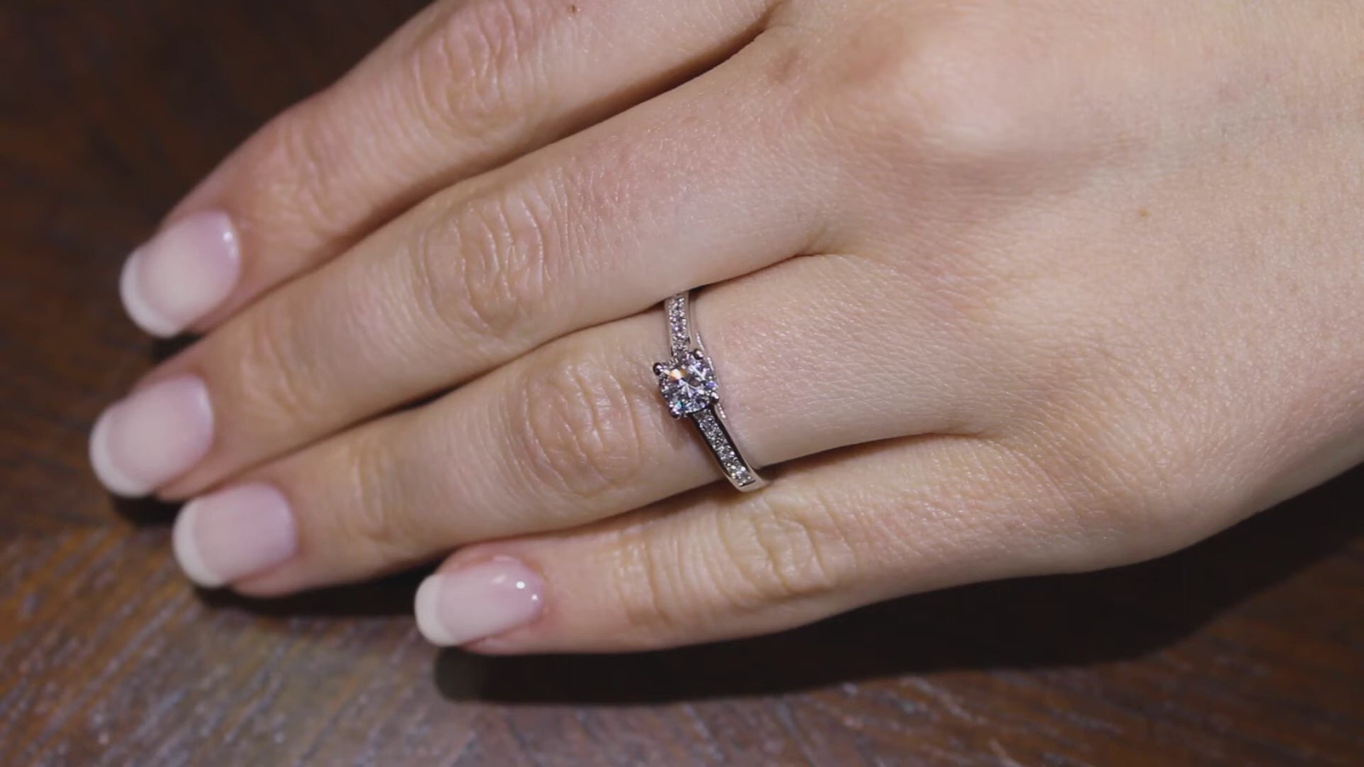 Round Cut Diamond Engagement Ring with Platinum Crossover Band - 'Lara'Round Cut Diamond Engagement Ring with Platinum Crossover Band - 'Lara'